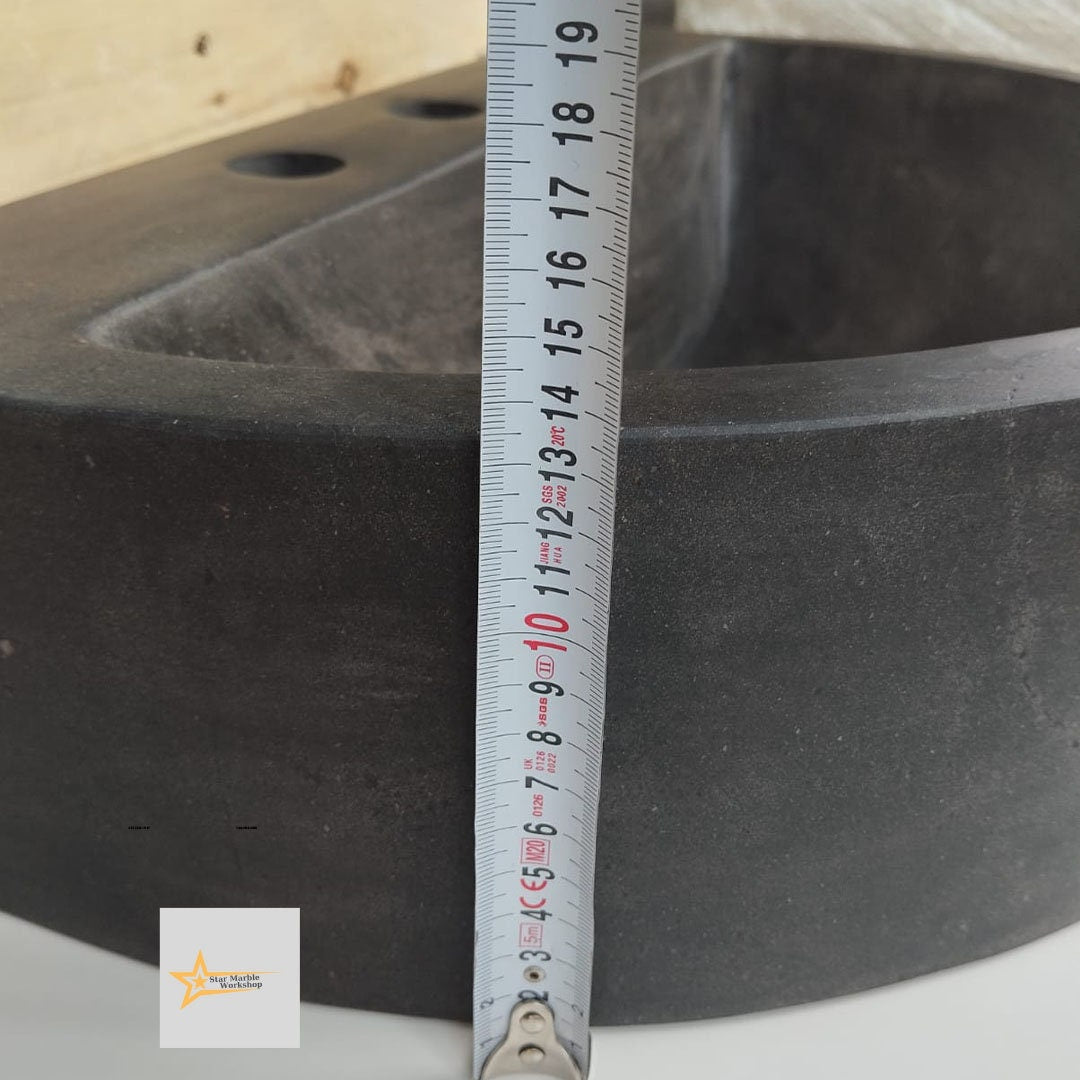 Basalt Black Stone D Design Sink With Faucet Hole 100% Natural Stone Matte Black Sink Stone Sink Bathroom Design Sink vanity Handmade Sink