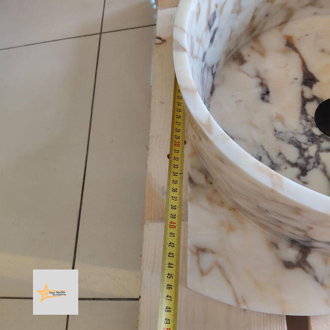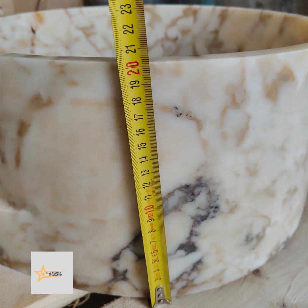 Hand Carved Calacatta Gold Marble Sink: Round Bathroom Vessel