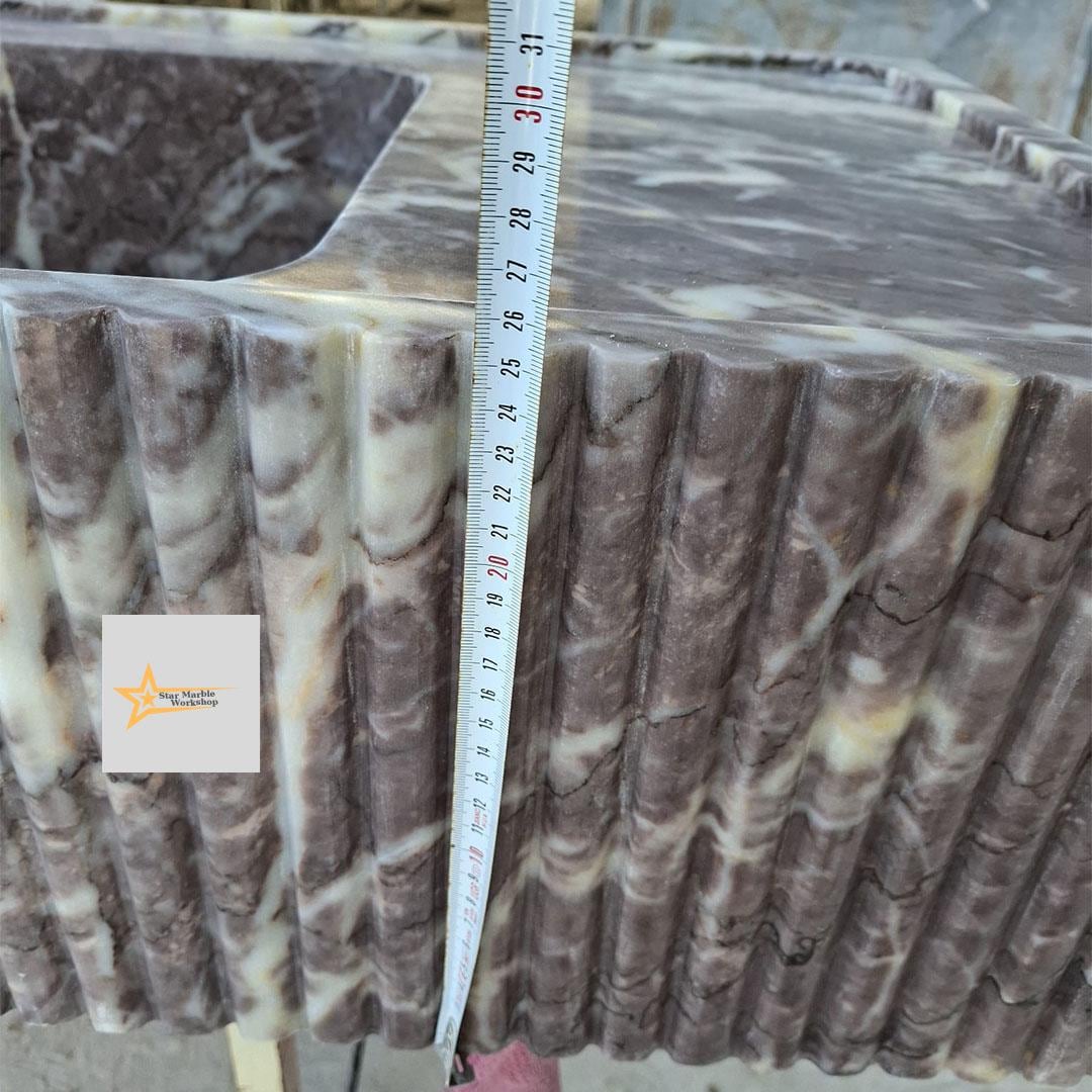 Each piece is made from 100% natural marble, featuring unique purple and pink veining that makes every sink one of a kind.