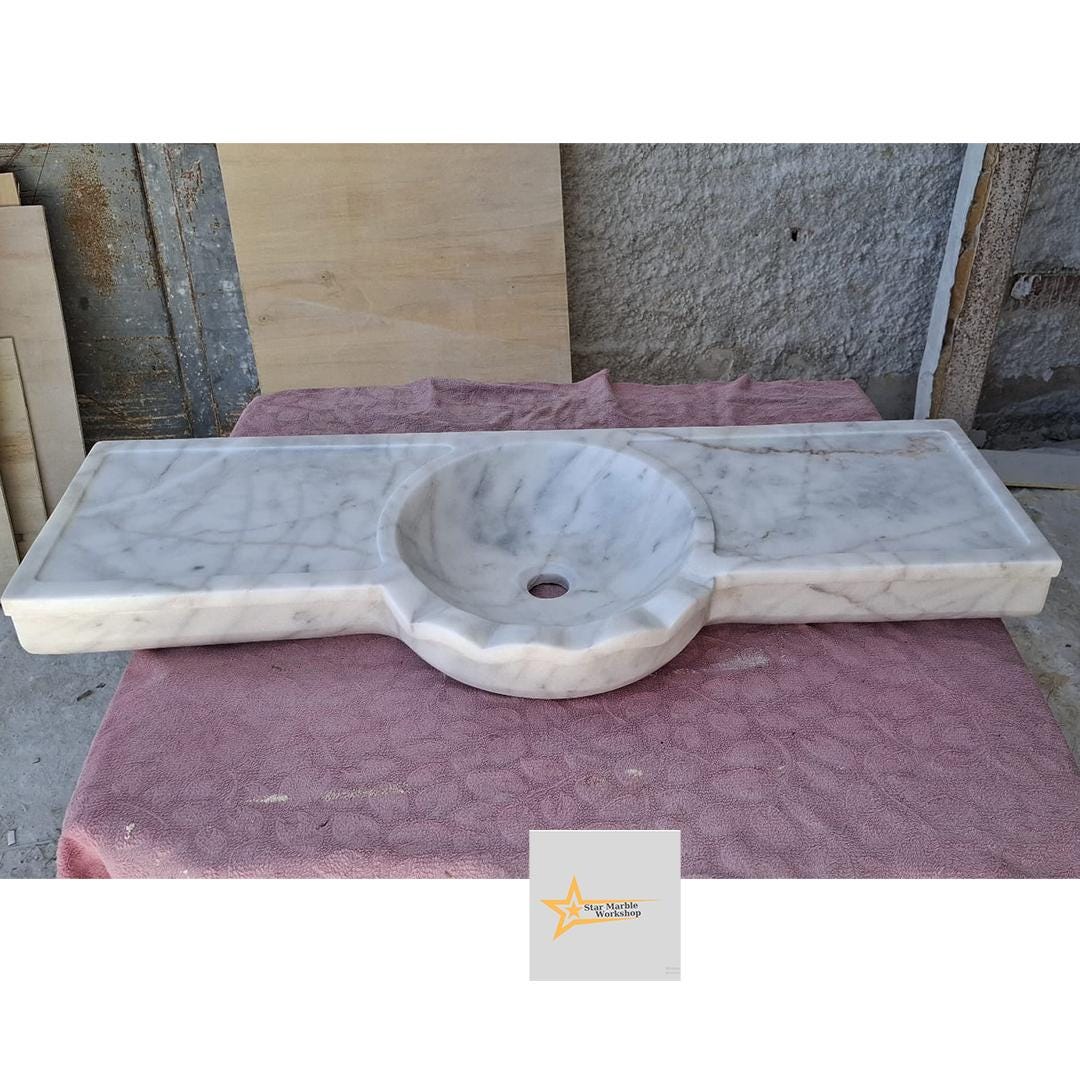 Bring timeless elegance to your bathroom with our handcrafted Carrara white marble sink.
